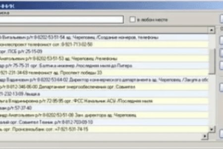 Телефонный справочник - это удобная программа для хранения полезных телефонных номеров, а так же любой дргой информации. Простой и эффективный поиск по всем полям записи. Найденные записи отфильтровываются от других. Может использоваться как электронный справочник любой другой информации.