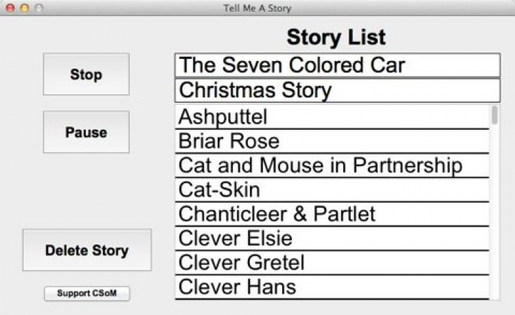 Tell Me A Story Программа для озвучивания текстовых файлов или книг. Может использоваться для чтения вслух для детей, ещё не умеющих читать самостоятельно, или для облегчения чтения для слабозрячих.