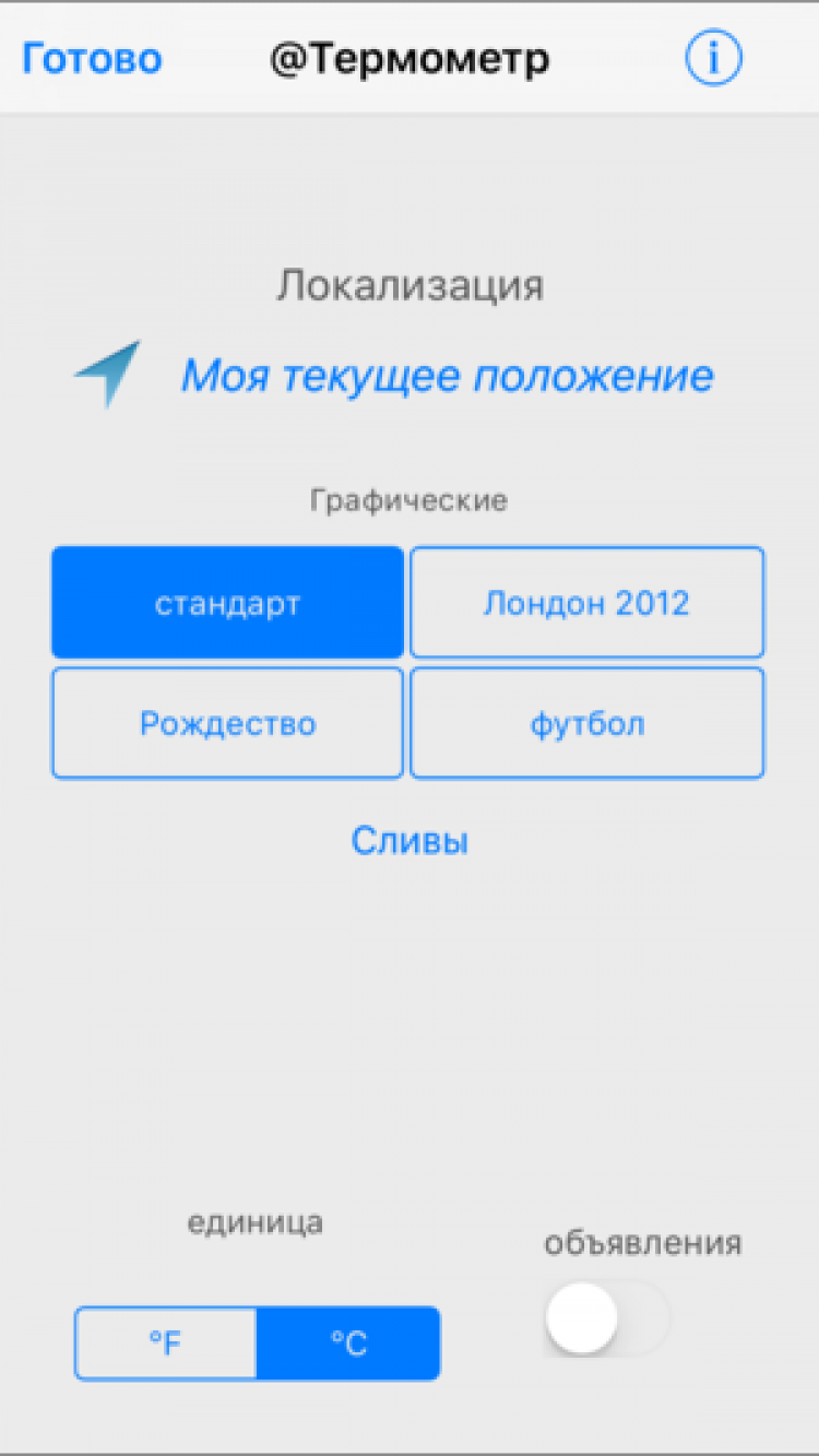 Термометр приложение, для определения точной температуры воздуха в зависимости от местоположения пользователя. Приложение совместимо с версиями iOS с девятой по одиннадцатую включительно.