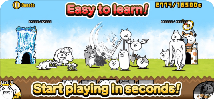 The Battle Cats — в этой игре вам предстоит создать армию странных, но очень милых котиков и дать отпор противнику, захватив его базу. Игра содержит большое количество разновидностей котиков, каждый из которых может быть улучшен за очки опыта, полученные за прохождение уровня. Игра обладает приятной графикой, увлекательным геймплеем, а так же обилием прикольных персонажей.