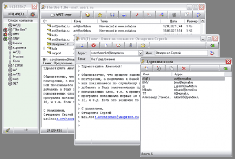 The Bee - это универсальная программа. Она сочетает в себе функции мессенджера, почтового клиента, новостного агрегатора и программы для хранения статей или писем. В The Bee можно подключать и использовать сразу несколько ICQ-аккаунтов, или почтовых аккаунтов. Программа поддерживает протоколы SSL и IMAP, распознает все кодировки (UTF-8, UUCode, KOI8-R), может работать с почтовыми вложениями, а также через прокси-сервер. The Bee можно также использовать для сохранения интересных статей из интернета или важных писем.
