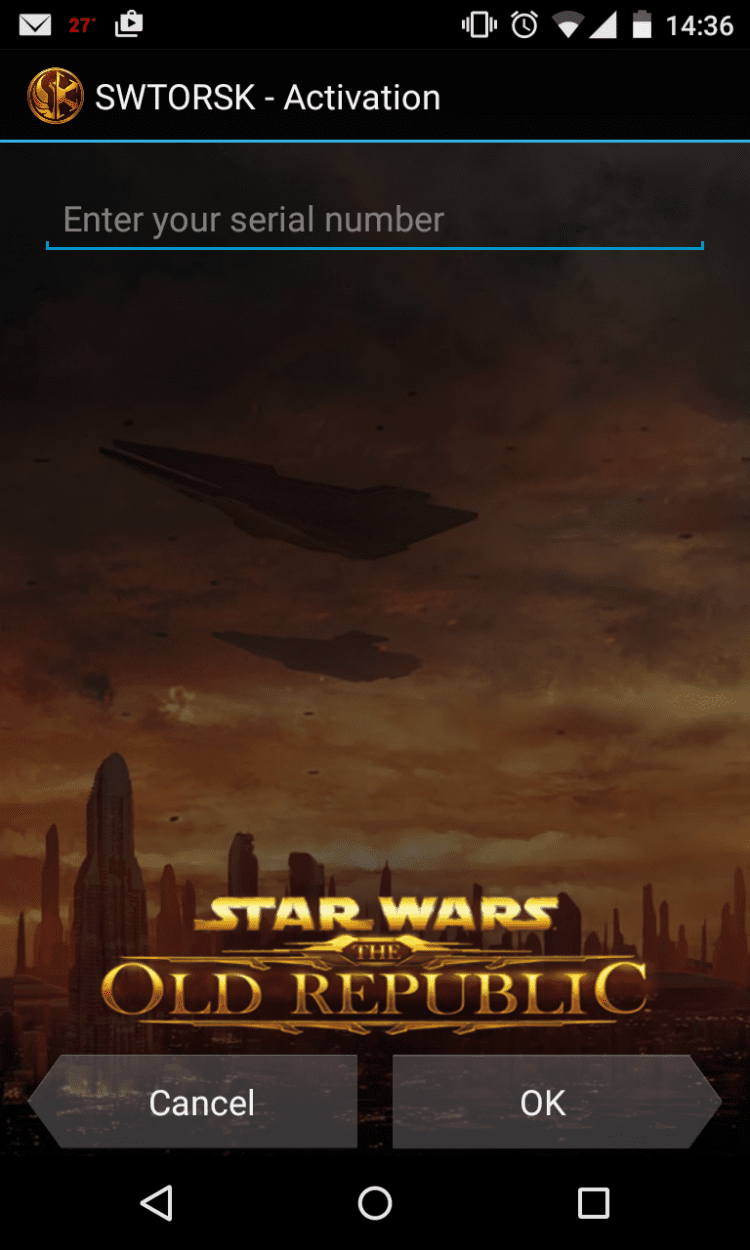 The Old Republic Security Key — это программа для вашего мобильного устройства на базе Android, которая генерирует одноразовый случайных защитный код для защищенного входа в Star Wars: The Old Republic.