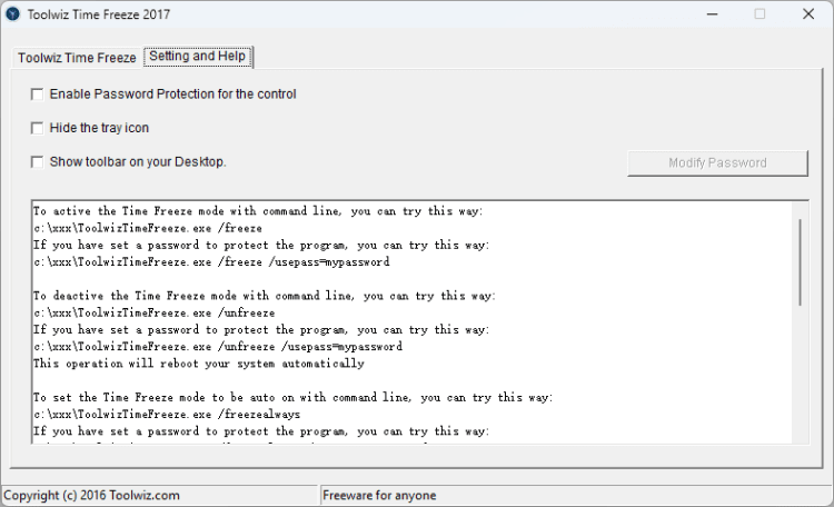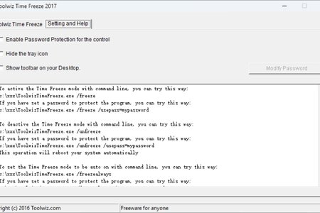 Time Freeze - это простая и эффективная программа, которая защищает вашу систему от нежелательных изменений, создаваемых сторонними программами. Также программа может защищать файлы и папки от изменения или ограничивать доступ к ним с помощью пароля. Программа создает полностью рабочую копию вашей системы, которую вы можете нормально (или ненормально) использовать, без риска для вашей "реальной" системы. Toolwiz Time Freeze имеет очень простой интерфейс, понятный даже начинающим пользователям