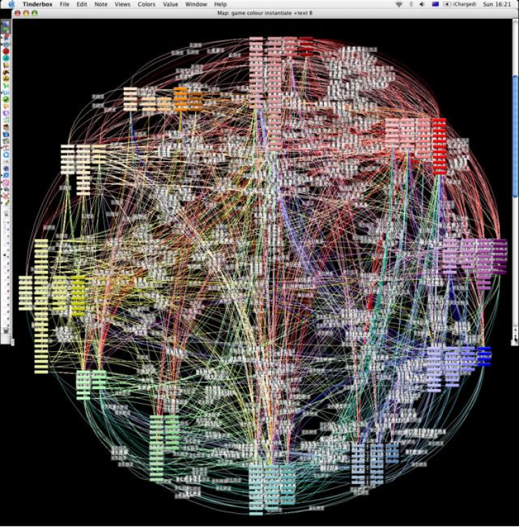 Tinderbox отмечает земетки при их создании. С его помощью можно выстраивать связи между ними, организовывать используя разные формы и цвета, соединять их.