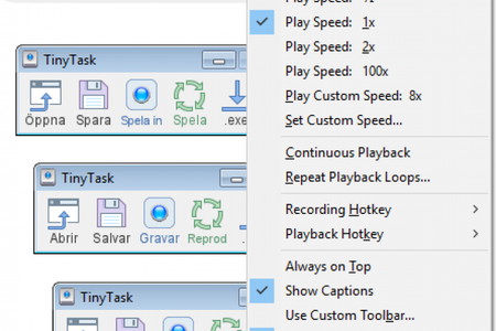 Утилита состоит из небольшого плавающего окошка, на котором сосредоточены все кнопки управления. Там есть кнопки начала и остановки записи действия, воспроизведения и импорта записанной последовательности манипуляций.