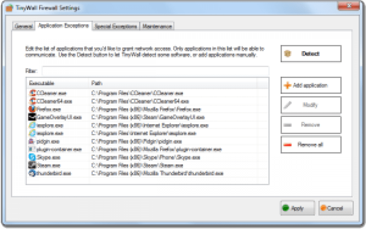 TinyWall - это легкий, простой и надежный файрвол для Windows. Распространяется бесплатно для всех пользователей ОС. Предназначен главным образом для домашнего использования.