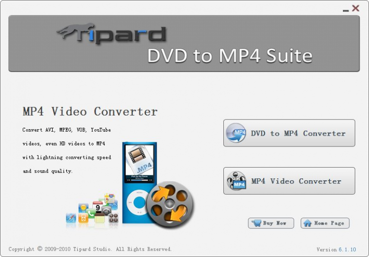 Tipard DVD to MP4 Suite - это мощный инструмент для конвертирования DVD-видео в формат МР4. Обладает гибкими настройками конвертирования и возможностью редактировать видео. Помимо основной задачи - конвертирования, программа умеет извлекать аудио-дорожки из видео и сохранять их в AAC, AC3, AIFF, AMR, AU, FLAC, MP3, M4A, MP2, OGG, WAV или WMA формате.