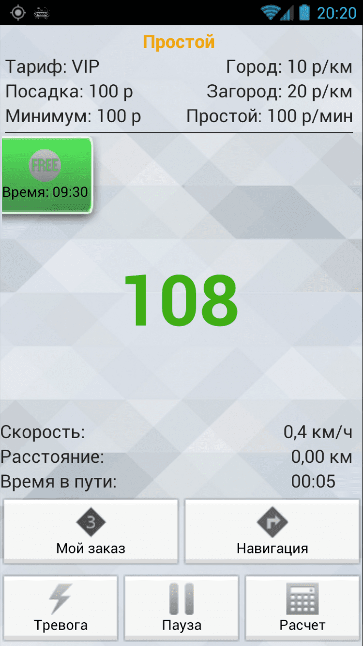 При помощи TMDriver вы также сможете просматривать количество спутников, с которых приложение получает данные, узнавать метод расчета стоимости, описание тарифа, быстро узнавать стоимость поездки, находить свободные стоянки, открытые заявки, определять скорость и координаты автомобиля и получать данные о пройденном пути и времени поездки.