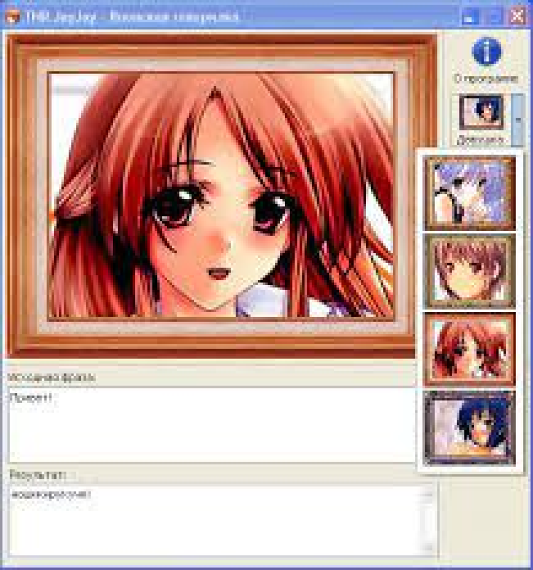 TNR JayJay - это прикольный японский переводчик-говорилка. Хотите узнать как могли бы звучать ваши имя и фамилия на японском? Программа "переведет" и озвучит любую фразу. Конечно с реальным японским языком программа не имеет ничего общего, зато может обеспечить много минут смеха вам и вашим друзьям. Имеется возможность выбрать диктора среди нескольких очаровательных анимэ-девушек. Для снятия некоторых функциональных ограничений необходима БЕСПЛАТНАЯ активация на сайте разработчика.