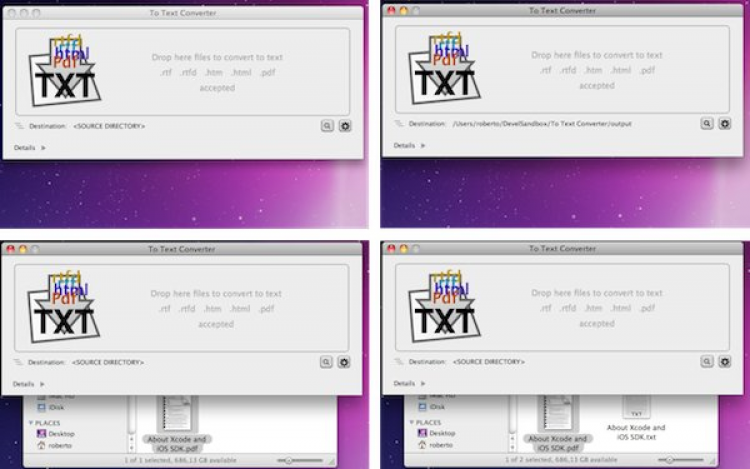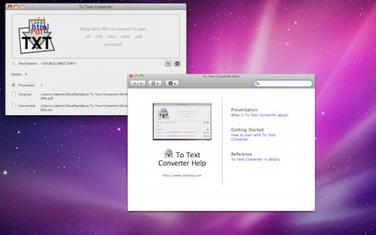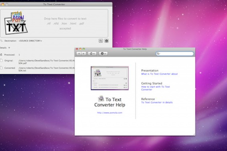 To Text Converter Программа для конвертирования PDF, HTML, RTF и RTFD документов в простые текстовые файлы. To Text Converter поможет извлечь текст, очисить его от форматирования и элементов программного кода. Есть возможность пакетного конвертирования файлов. Результаты можно сохранить в отдельную, указанную папку или рядом с оригиналом.