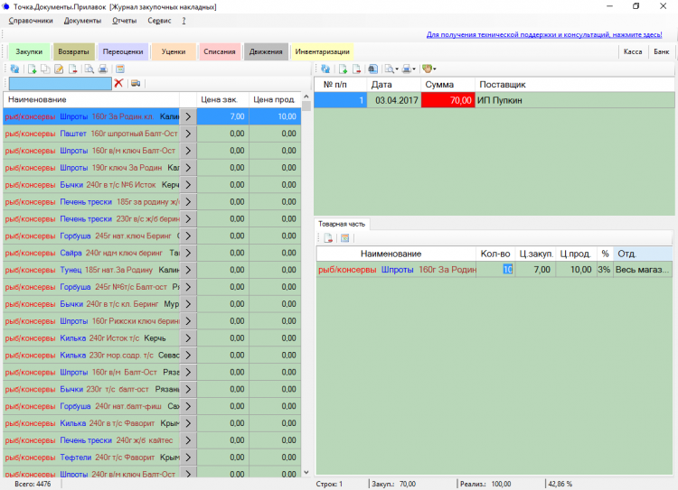 Точка.Документы.Прилавок - это программа для управления продуктовым магазином с прилавочной формой торговли. Подходит для небольших магазинов формата "у дома", продуктовых павильонов, киосков, лотков. Подходит для индивидуальных предпринимателей, занимающихся продуктовой торговлей. Не требует обслуживания и специального обучения.