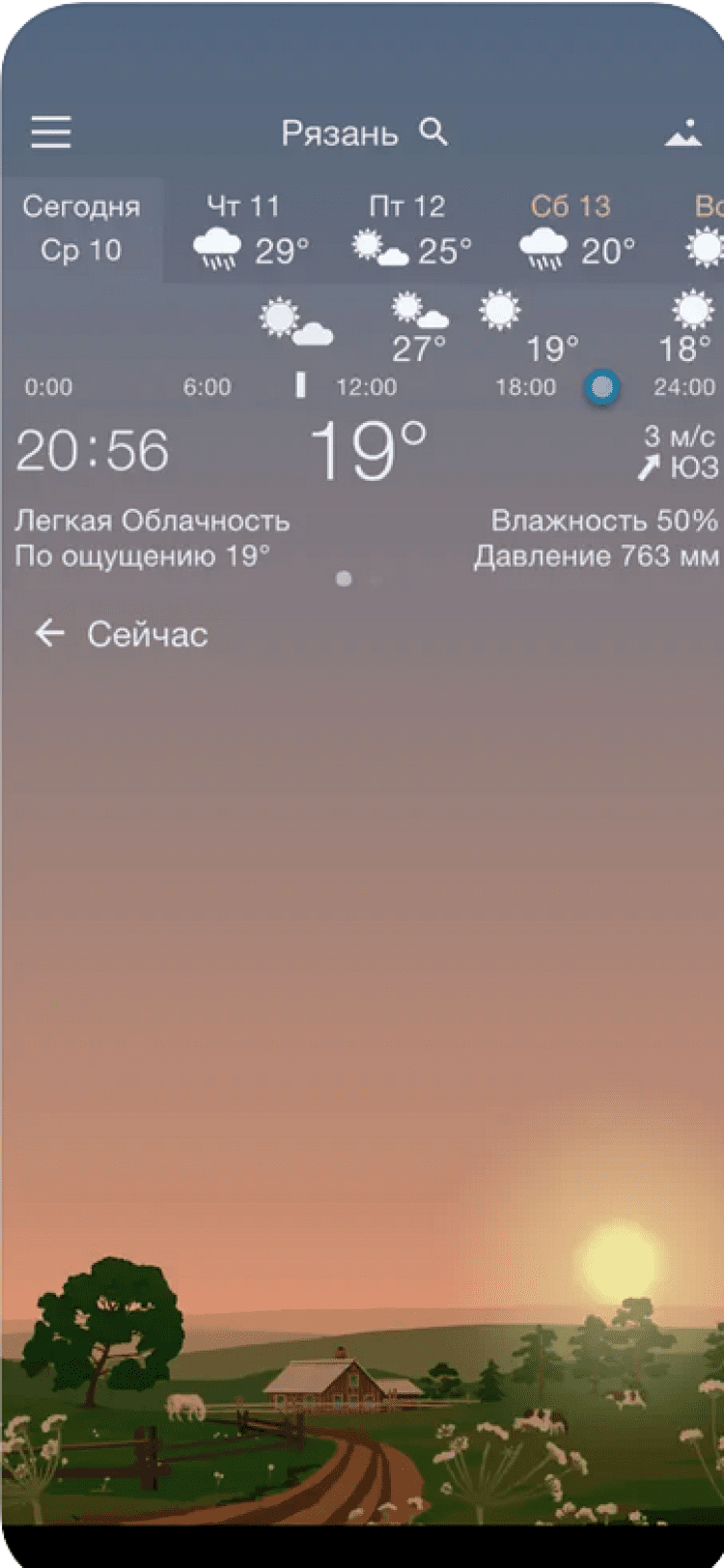 Точная Погода YoWindow — эта программа отображает прогноз погоды в вашем городе или в мире при помощи анимированных обоев. Солнце в этой программе всходит и садится точно тогда, когда и в реальной жизни. Вы сможете увидеть, как изменится температура воздуха, направление и сила ветра в течение дня, просто проведя по экрану вашего устройства пальцем. Программа обладает красивыми живыми обоями, изображение на которых изменяется в зависимости от погоды за окном, приятными звуковыми эффектами, а так же отображает информацию о температуре воздуха в панели уведомлений. Данные о погоде берутся из источников yr.no и NWS.