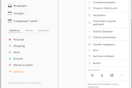 Todoist - это удобный орагнайзер, который поможет разложить по полочкам все намеченные дела и предстоящие события. Для работы с программой нужно будет завести аккаунт, к тому же она требует подключение к Интернету. После входа в аккаунт можно приступать к созданию списков дел и расстановке приоритетов.