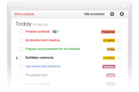 Todoist Это изящное приложение со списком дел для Mac OS X поддерживает Вашу организованность, сосредоточенность и еще большую продуктивность. Просто кликните по иконке Todoist или используйте комбинацию клавиш CMD+Shift+T для того, чтобы мгновенно увидеть и управлять всеми Вашими задачами. Так же это приложение автоматически синхронизирует Ваши задачи на всех Ваших устройствах - смартфонах, планшетах, ноутбуках, настольных компьютерах, поэтому у Вас всегда есть доступ к актуальной информации.