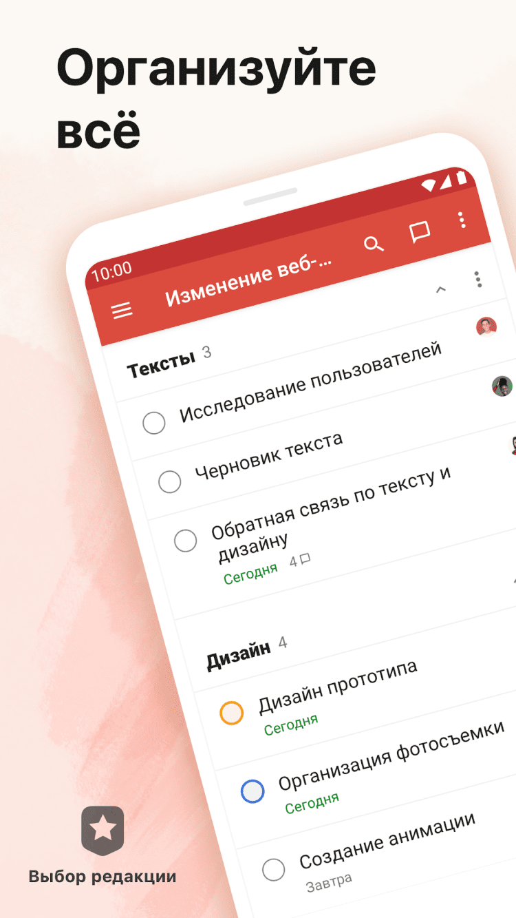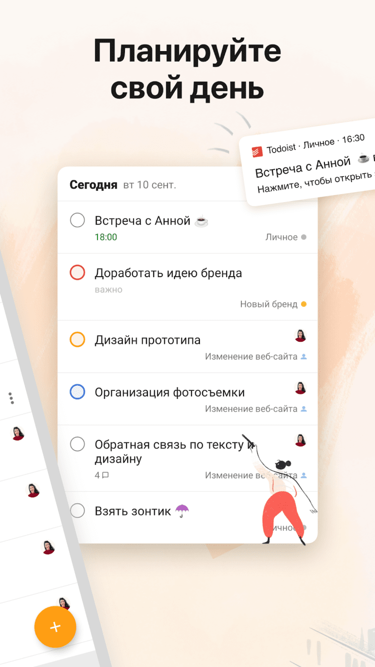 Приложение с идеальным производительным списком дел всегда там, где Вам нужно: на мобильном устройстве, десктопе, браузере, Gmail и пр. Признанный TechCrunch, NYT, Lifehacker, ReadWriteWeb и многими другими, Todoist прекрасно работает на всех Ваших устройствах (на десктопах, с веб-браузерами, клиентами электронной почты и мобильными), поэтому Вы сможете повысить свою производительность и каждый день делать больше.