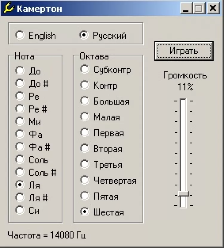 В основе программы - генератор синусоидальных колебаний, который работает непосредственно с драйвером звуковой карты, что позволяет получить максимально возможное качество звука. Диапазон генерируемых частот дискретно разбит на ноты и октавы (от субконтроктавы до шестой октавы).
