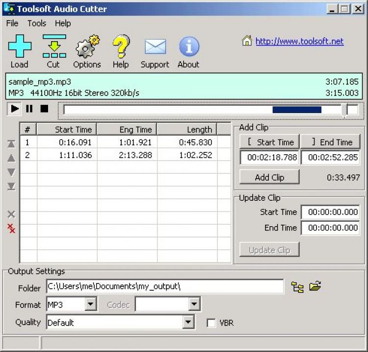 - Русский язык интерфейса: Toolsoft Audio Cutter на русском языке – это удобно и понятно.