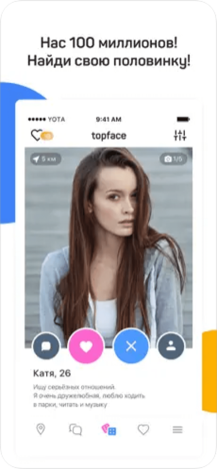 Приложение Topface откроет вам доступ к сервису знакомств, которым пользуется более 70 миллионов человек по всему миру. Среди них вы найдете интересных собеседников, друзей по интересам и, возможно, свою любовь.