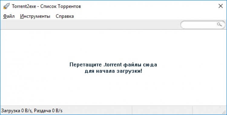Torrent2exe - это небольшой и не перегруженный лишними функциями и элементами BitTorrent-клиент. Помимо работы по своему прямому назначению, способен преобразовывать torrent-файлы в .exe.
