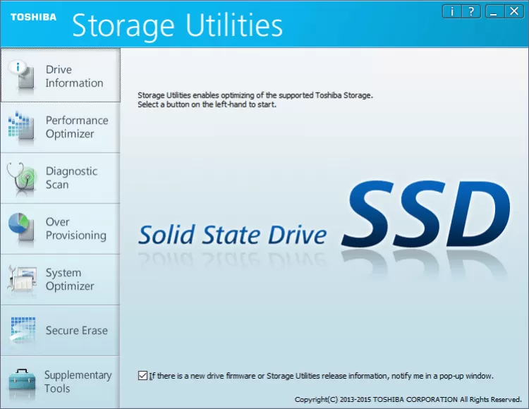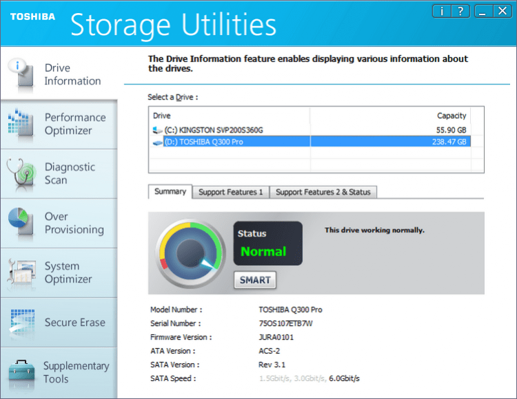 Toshiba Storage Utilities утилита для обслуживания SSD дисков. Предназначена для мониторинга состояния накопителя и оптимизации его работы.