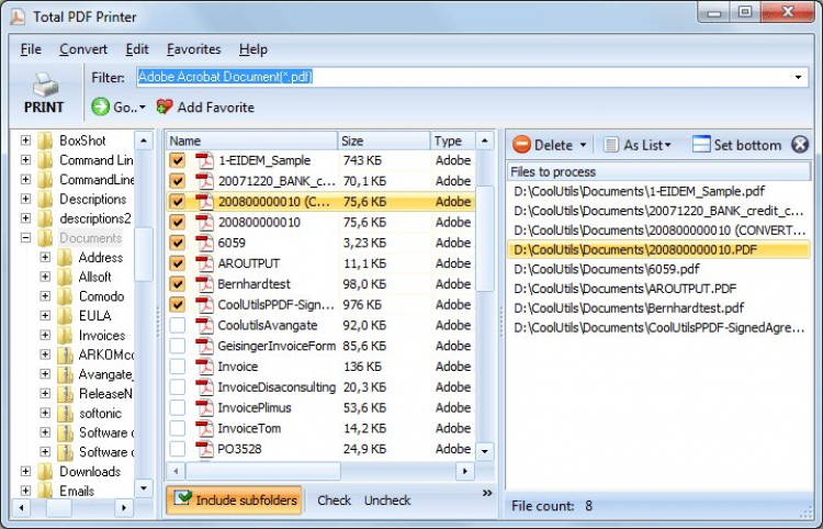 Total PDF Printer Программа для печати большого количества PDF-файлов. Позволяет распечатывать целые папки с документами без лишних вопросов и прерываний. Total PDF Printer может распечатывать PDF документы по порядку согласно дате/времени создания файла.