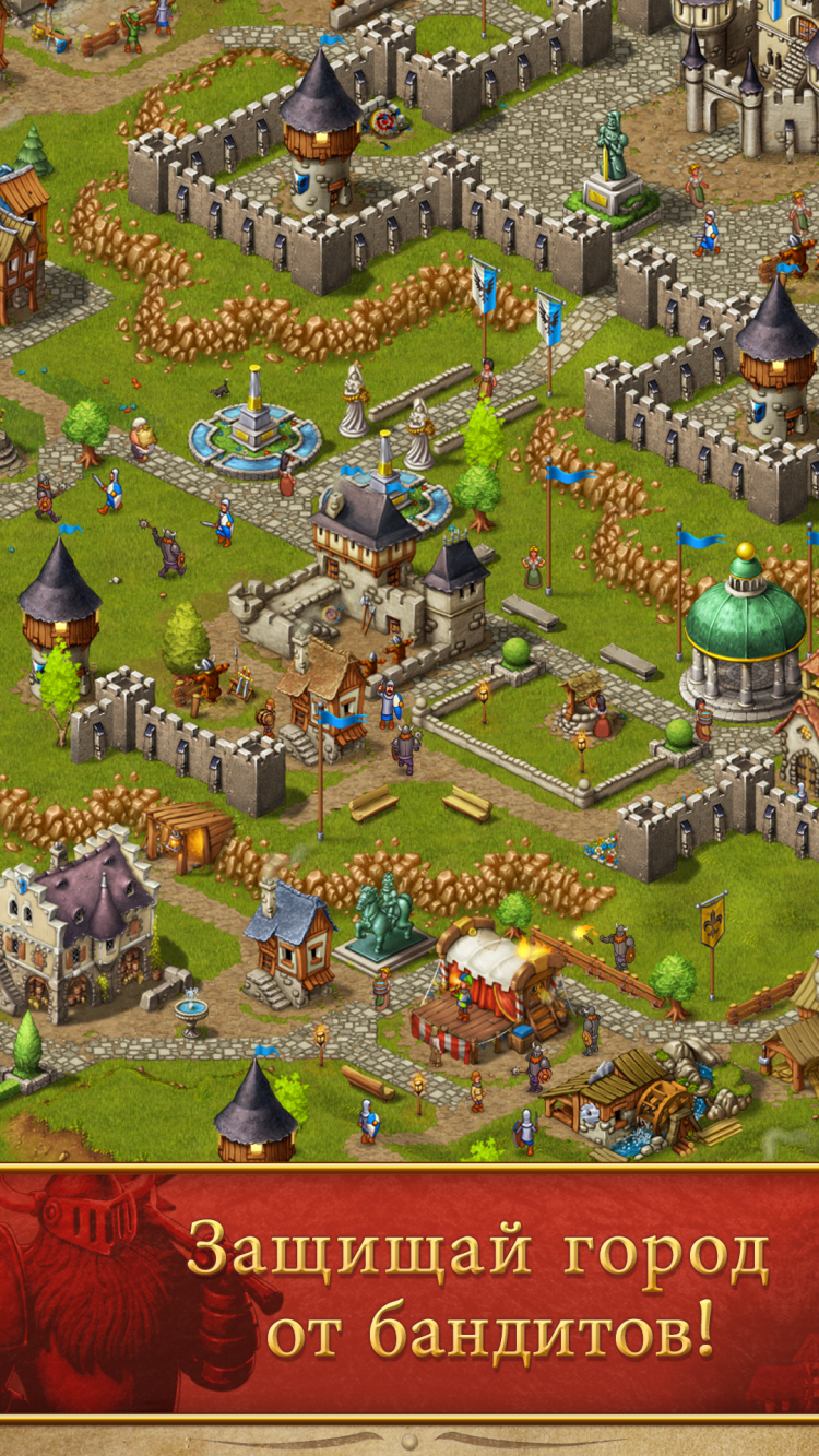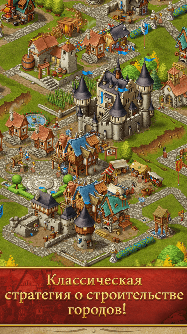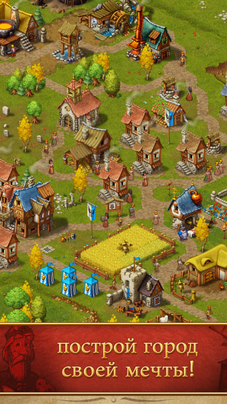Преврати свою крохотную деревню в великолепный средневековый город с цветущей экономикой и счастливыми поселянами! Начиная от добычи полезных ископаемых, заготовки древесины и сельского хозяйства и заканчивая производством ювелирных изделий, инструментов и одежды, хорошо управляемая экономика является ключом к успеху! Строй церкви, таверны и рынки для твоих поселян! Украшай свой город с помощью величественных статуй, великолепных памятников и пышных парков и садов. Наблюдай за милыми поселянами, суетливо торопящимися по своим повседневным делам, и делай все, чтобы они были счастливы и сыты! Помни: только счастливые поселяне проявляют должное трудолюбие!