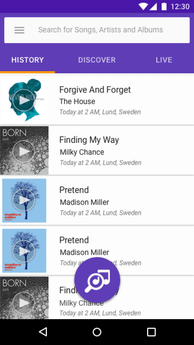 TrackID: Распознавание музыки Программа TrackID вынесет привычное повседневное прослушивание музыки на новый уровень, позволив вам быстро находить информацию о прослушиваемых вами композициях в интернете. Программа TrackID позволит вам просматривать биографии исполнителей, находить видеоклипы на YouTube или слушать другие композиции выбранного исполнителя. Найти всю интересующую вас информацию необычайно просто: просто нажмите на кнопку в центре экрана. Так же, TrackID позволяет делиться лучшими музыкальными композициями с друзьями на сайте Facebook.