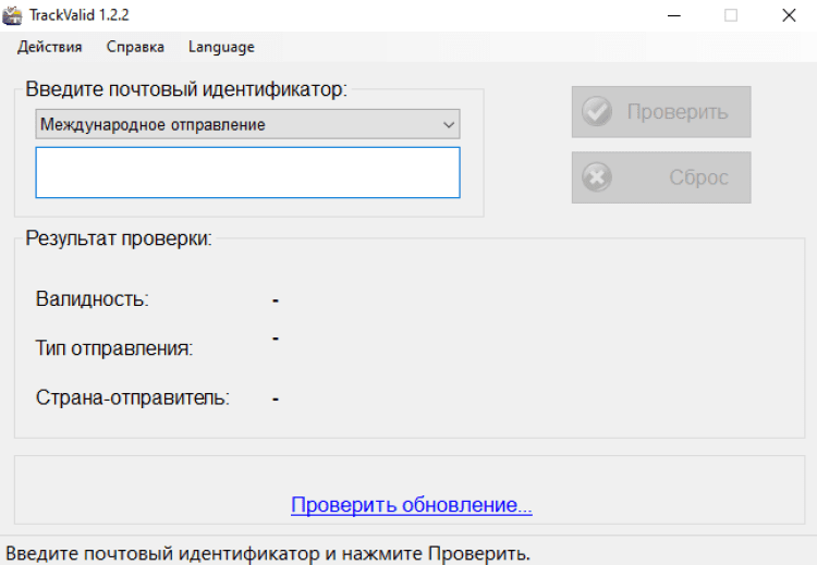 TrackValid - это утилита, предназначенная для валидации почтовых трек-номеров по стандарту Международного почтового союза UPU-S10. TrackValid поможет определить страну-отправителя по стандарту ISO 3166-1 alpha-2 и тип почтового отправления. Программа поддерживает трек-номера стандарта UPU-S10, начинающиеся на A, C, E, L и R.