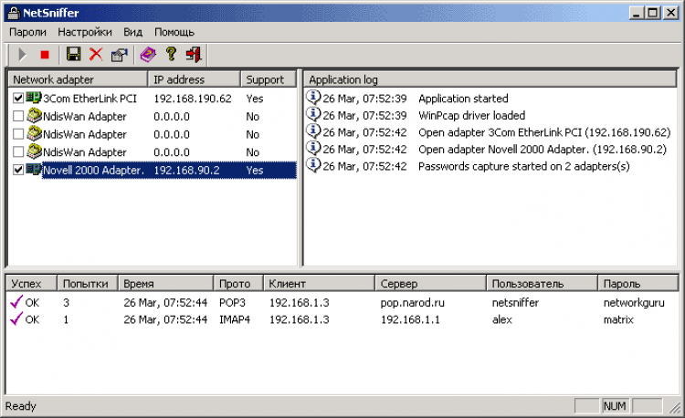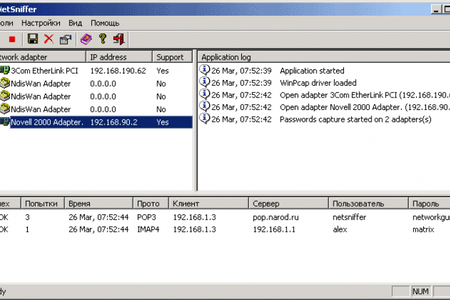 Trafficreg Password Sniffer - это утилита для сбора POP3, IMAP4, FTP паролей передающихся по локальной сети в незашифрованном виде. Мультипотоковая архитектура приложения позволяет одновременно собирать пароли с 4-х сетевых адаптеров.