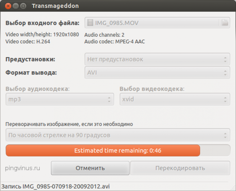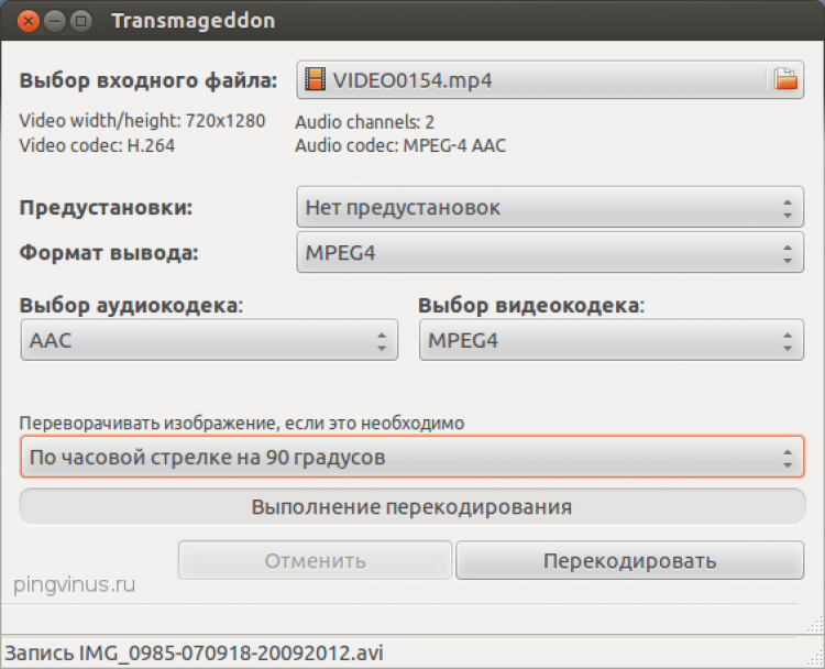 Transmageddon Программа для конвертирования видео файлов между различными форматами. Программа позволяет задавать параметры выходного файла вручную, или же воспользоваться готовыми пресетами настроек для мобильных устройств. Так же, в отличие от большинства других аналогичных программ, Transmageddon позволяет поворачивать видео и отражать его по вертикали и горизонтали.