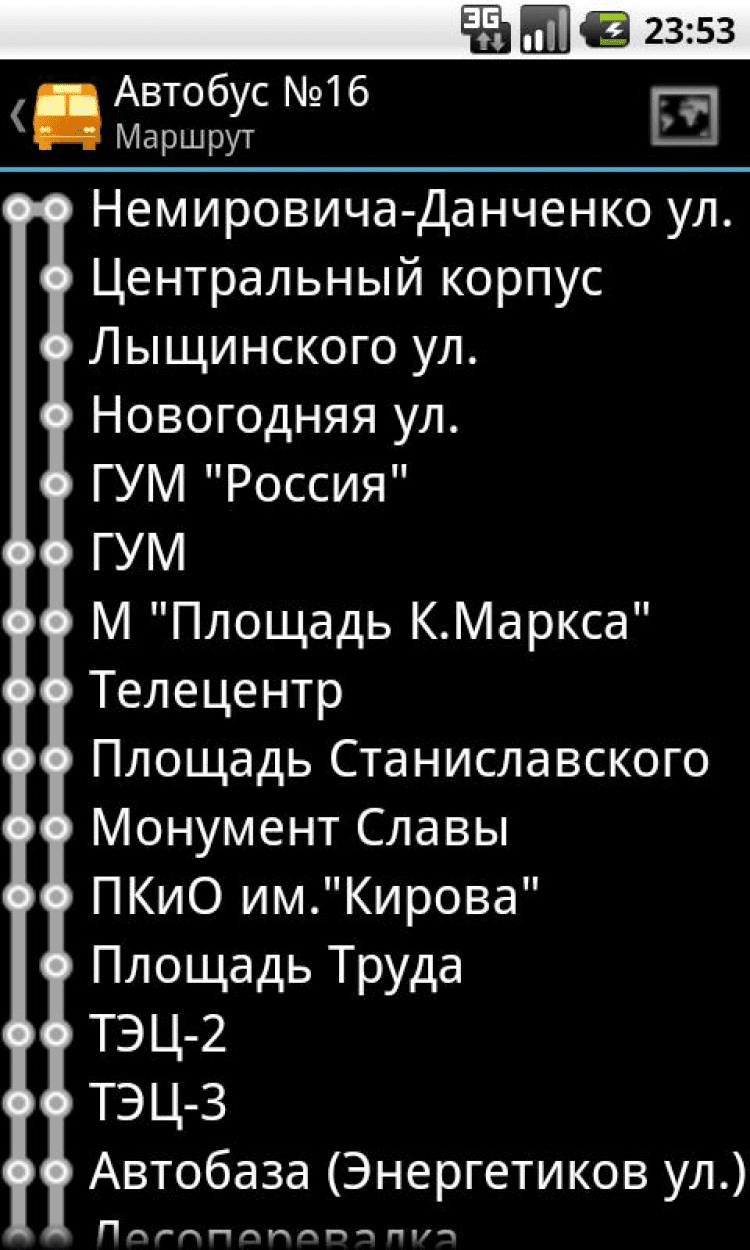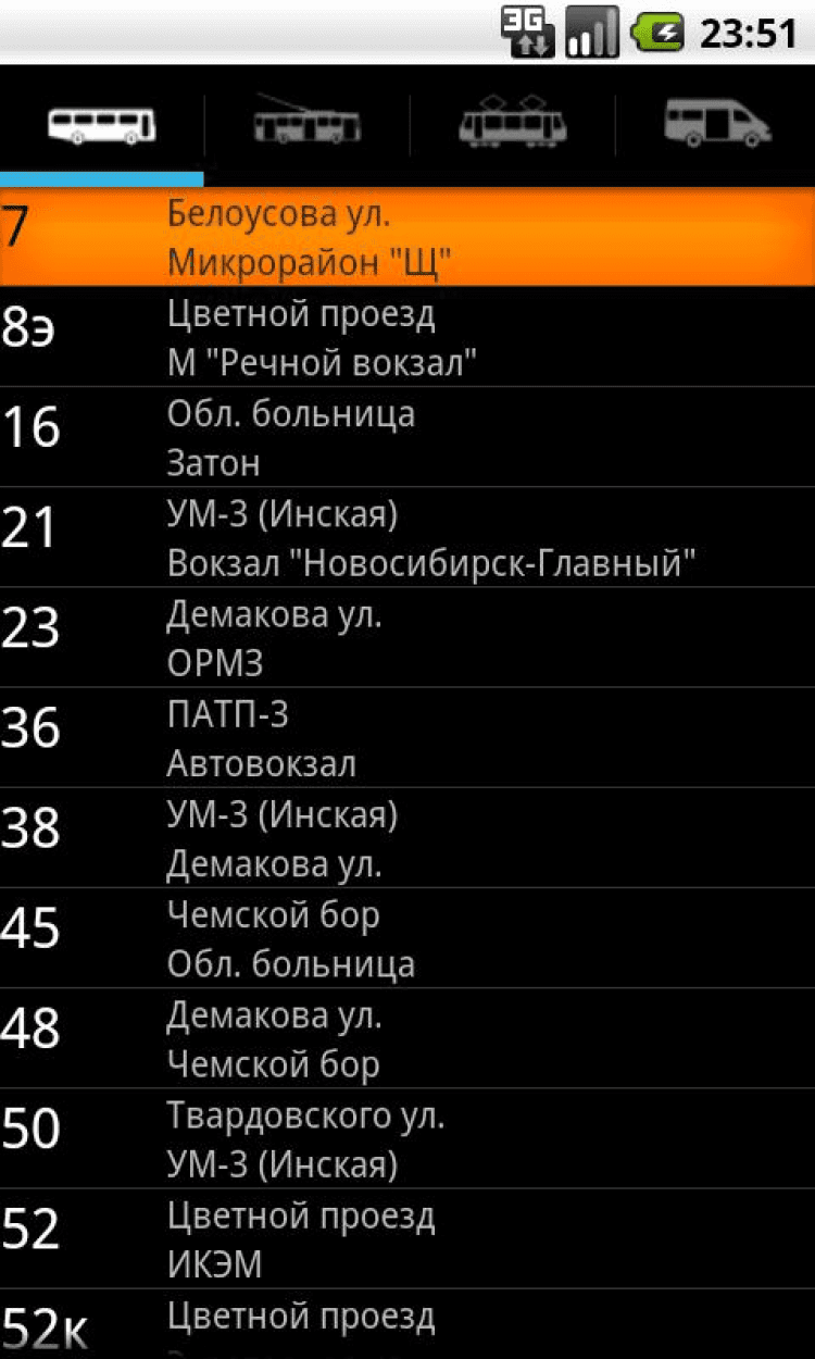 Транспорт Новосибирска Программа, в которой вы сможете узнать список маршрутов муниципального транспорта города Новосибирска, остановки маршрутов, расписание движения, а так же положение транспорта на карте. Узнавайте примерное время прибытия транспорта на остановку, чтобы избавить себя от долгого ожидания на улице в непогоду.