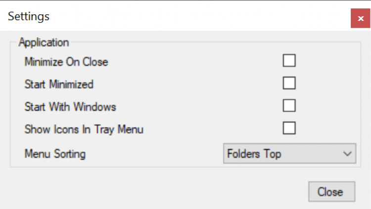 В плане настроек TrayDir не особо изобилует: запуск с Windows, сворачивание на запуске и метод сортировки пунктов. На этом все. В принципе больше и не нужно, учитывая простую концепцию приложения.