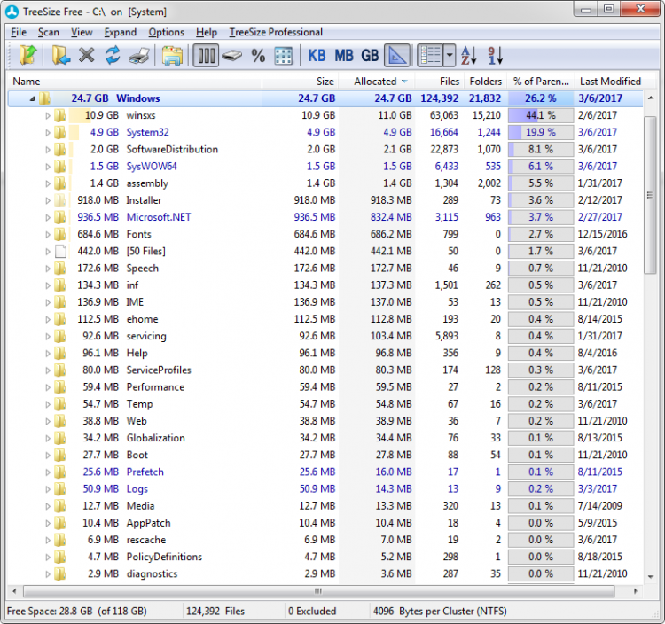 Покажет, какие файлы и папки занимают больше всего места на вашем жестком диске. Эта программа имеет простой интерфейс, который поможет в удобной форме получить сведения о размере всех файлов и папок, а также процент места, которое они занимают.
