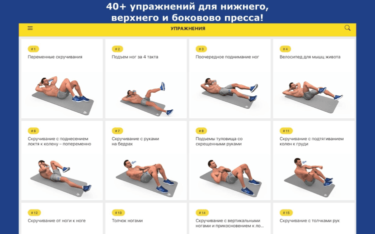 Тренировка Пресса - фитнес дома Приложение содержит ряд альтернативных способов тренировки пресса, избавляющих вас от нудных и монотонных классических упражнений, сохраняя при этом их эффективность. Теперь вы сможете качать пресс с удовольствием.