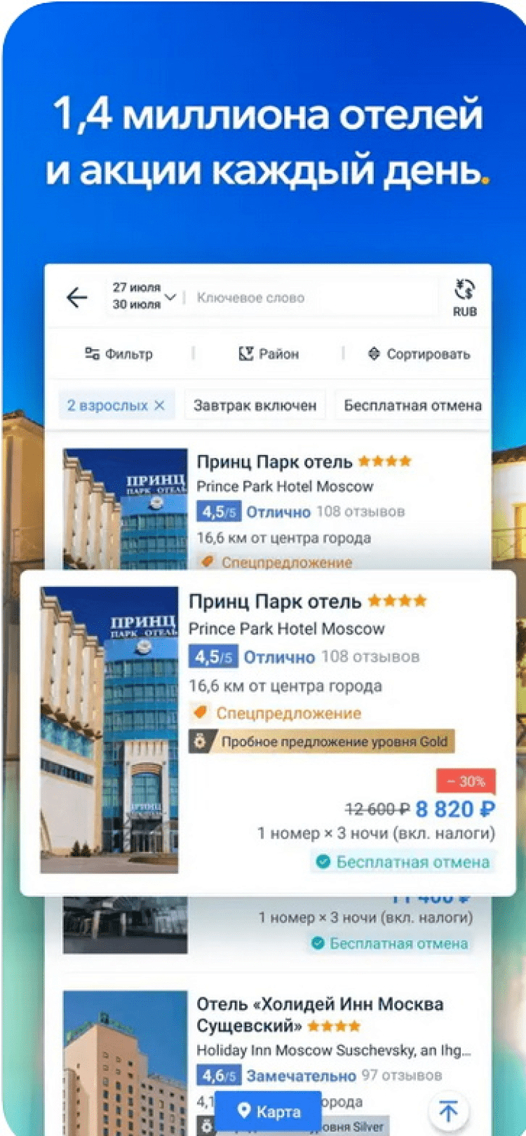 - огромная база из более, чем 1,2 млн. отелей, по всему миру,
