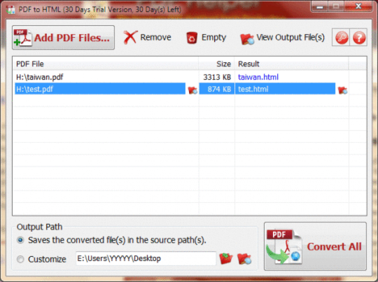 PDF to HTML — это программа, позволяющая легко и быстро конвертировать PDF документы в формат HTML. Для ее работы не нужно устанавливать ни Adobe Acrobat, ни Adobe Reader. Программа обладает простым и удобным интерфейсом и высокой скоростью конвертирования. При конвертировании полностью сохраняется оригинальное форматирование документа.