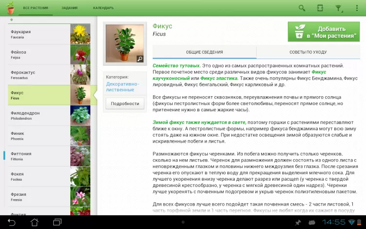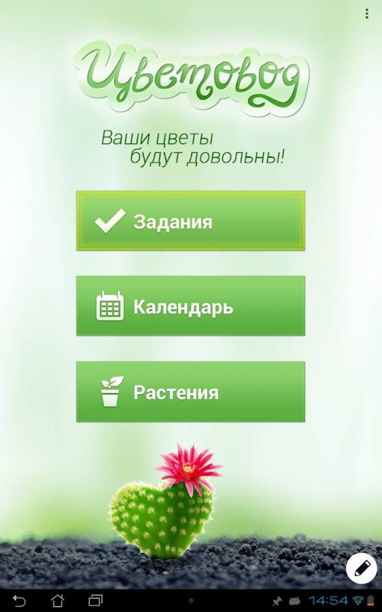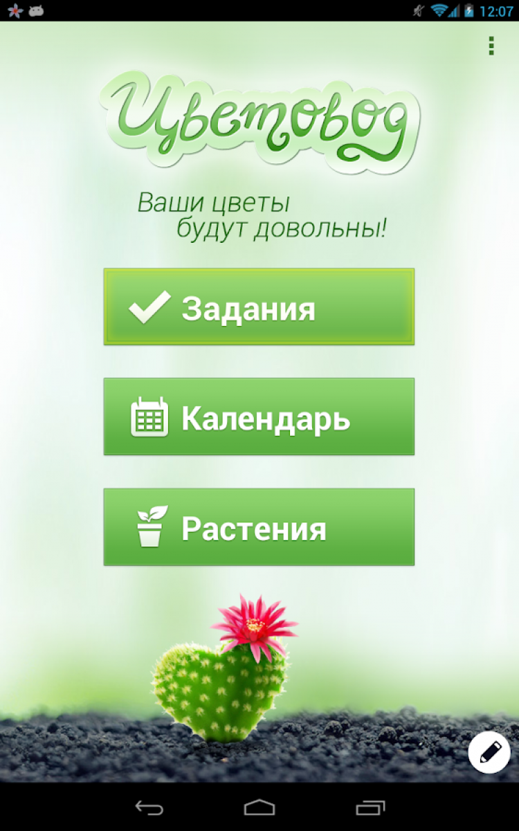 Цветовод - ваши цветы довольны Календарь по поливу и уходу за растениями и обширный справочник. Вы добавляете ваши цветы и растения, и Цветовод автоматически напомнит про полив, когда нужно провести опрыскивание, удобрить почву или что настало время пересадки. Полное отсутствие рекламы и обширный справочник по более чем 250 растениям - это именно то, что вам нужно.