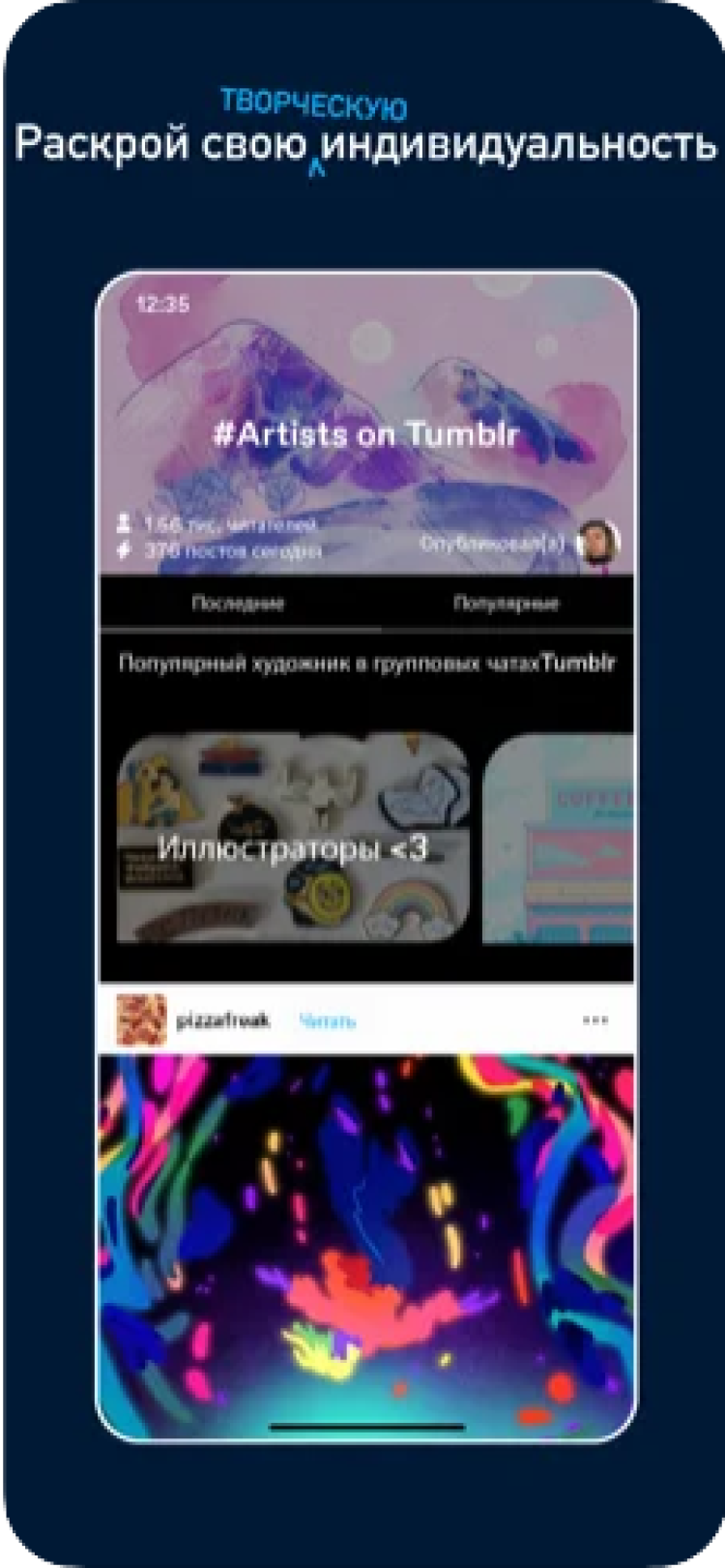 Приложение Tumblr позволит вам читать блоги самых интересных людей в любой момент. Здесь вы найдете лучшие фотографии, GIF-анимации, видео, музыку и просто интересные тексты. Оставляйте к ним свои комментарии, участвуйте в обсуждениях, делайте реблоги понравившихся постов и подписывайтесь на блоги многочисленных художников, музыкантов, юмористов, дизайнеров, мыслителей, ученых, публицистов, архитекторов и других интересных людей.