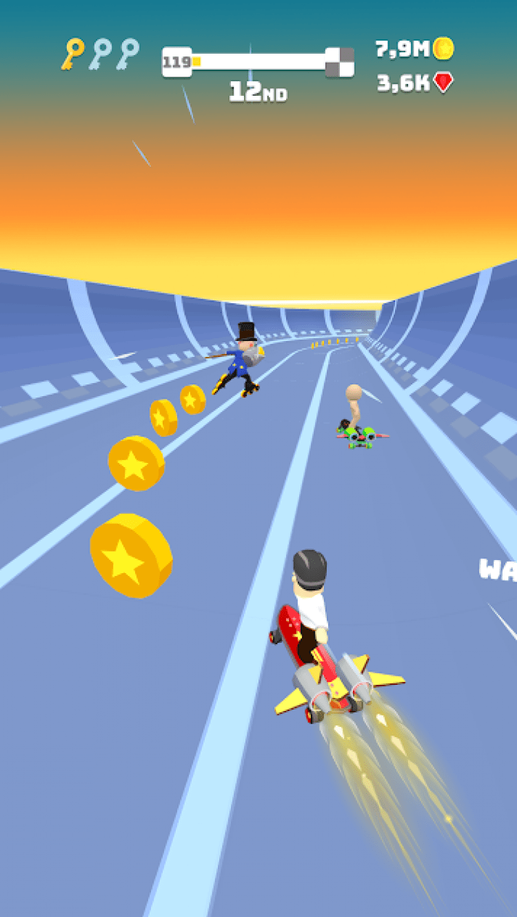 Turbo Stars — красочная игра для мобильных телефонов, в которой вам предстоит мчаться по всевозможным трассам, собирать монетки и ключи, а также избегать столкновения с препятствиями. Постарайтесь обогнать своих противников: если вы придёте к финишу первым, будет разблокирована новая трасса.