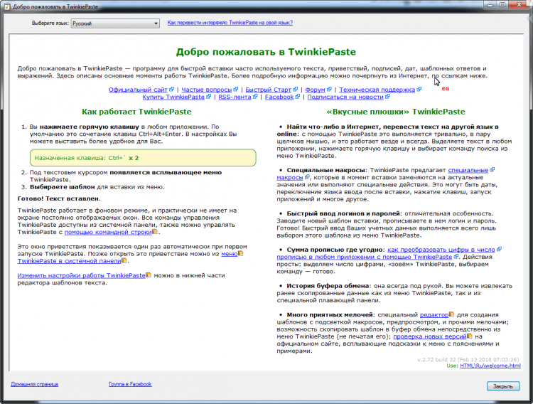 По умолчанию для вставки в TwinkiePaste применяется горячая клавиша CTRL+ALT+Enter. Но вы можете выбрать свою собственную в настройках.