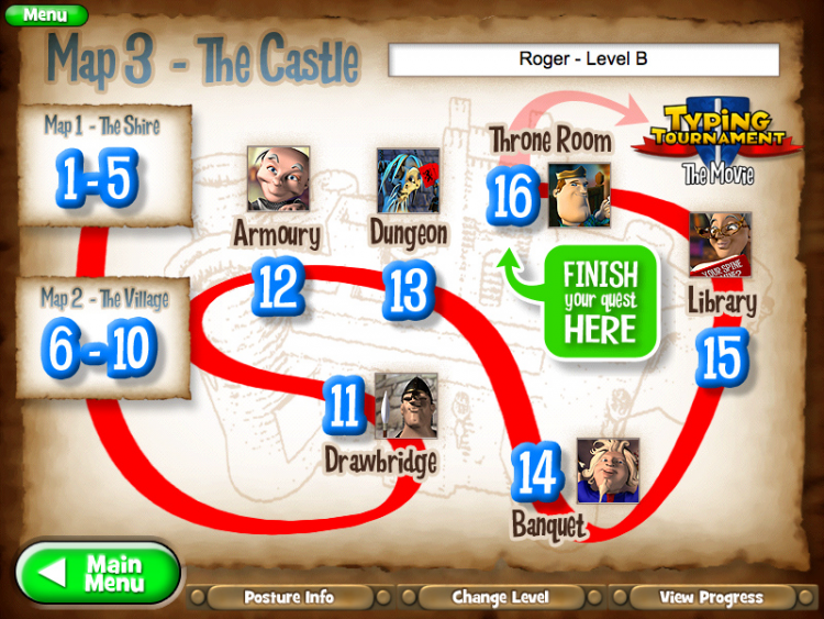 Typing Tournament Увлекательный и необычный клавиатурный тренажер. Подойдет как детям так и взрослым. Вы можете начать все с чистого листа или воспользоваться диагностикой для определения ваших способностей. Это не просто тренажер, это - настоящее приключение! Повышайте свои навыки и докажите, что достойны сразиться с Черным Печатником. Путешествуйте из одно локации в другую, собирайте сокровища и завоевывайте награды. В каждой локации вас ждет 4 новых клавиши, уроки, демонстрация и "печатные" мини-игры.