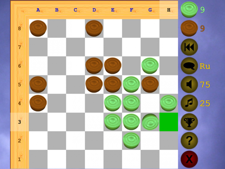 Уголки - это игра, которая подстраивается под любое разрешение экрана. Есть звуковое оформление. Может делать случайные ходы в одинаковой позиции. Не требует инсталляции.