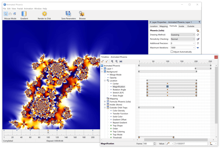 Ultra Fractal - это программа, позволяющая создавать изображения фрактальных множеств, а также выполнять их анимацию. Процесс построения изображений определяется набором алгоритмов, описывающих разновидности визуализируемых фракталов, методы их раскраски и применяемые к ним трансформации. Указанные алгоритмы представляются в виде текстовых файлов, написанных на специальном языке программирования, поддерживающем такие базовые конструкции как массивы, функции, циклы и классы. Такая модульная архитектура позволяет пользователю не только использовать кем-то уже созданные алгоритмы, но и создавать собственные.