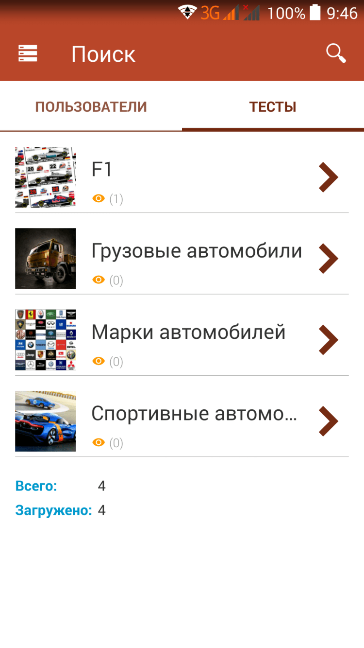 Также в приложение присутствует рейтинг пользователей (на данный момент рейтинг пользователей считается из ответов на его вопросы в тестах, в перспективе рейтинг будет дополнен и другими источниками) и рейтинг тестов (тесты имеют подсчет просмотров и дислайки, по ним тесты сортируются в поиске). Приложение совершенно бесплатно и без навязчивой рекламы. Развивайтесь! Это полезно!