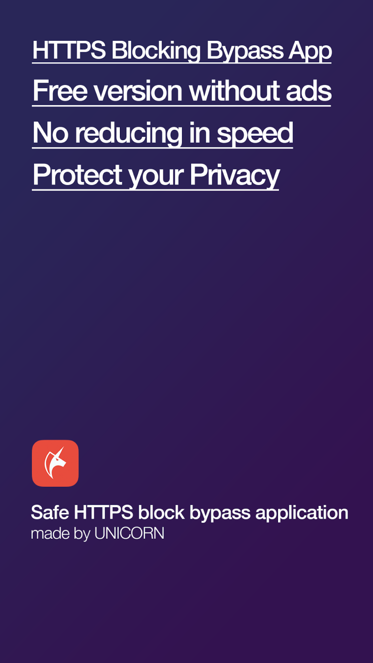 Вы устали от всей этой онлайн-цензуры, которая мешает вам посещать нужные веб-сайты? К счастью, есть простой способ избежать этого неудобства. Unicorn HTTPS — это незаменимое приложение для пользователей Android, которые ценят безопасность и конфиденциальность при получении доступа к любой веб-странице , независимо от того, заблокирована она или нет. И все же, это не совсем очередной VPN-клиент. Unicorn HTTPS создает поддельный локальный VPN для разблокировки доступа к нужным ресурсам и защиты ваших данных от посторонних глаз. Все, что вам нужно сделать, это нажать одну кнопку в приложении и наслаждаться бесплатным и безграничным интернет-серфингом.