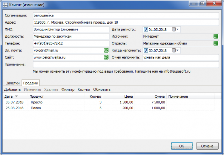 - Добавление собственных полей. В программе будут только нужные вам поля.