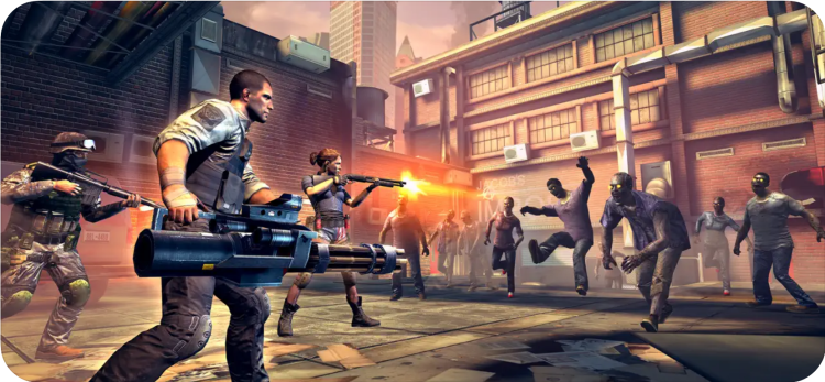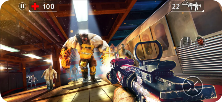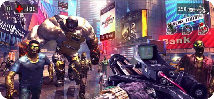 - Шутер от первого лица. Расстрел зомби требует от игрока применения тактики и обхождения мест скопления зомби.
