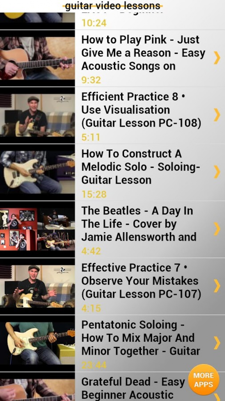 Уроки игры на гитаре — это программа, которая поможет вам научиться играть на гитаре, наблюдая видео демонстрации. Это приложение имеет множество видео-уроков, аудио и текстовых уроков по игре на гитаре для опытных игроков и новичков.