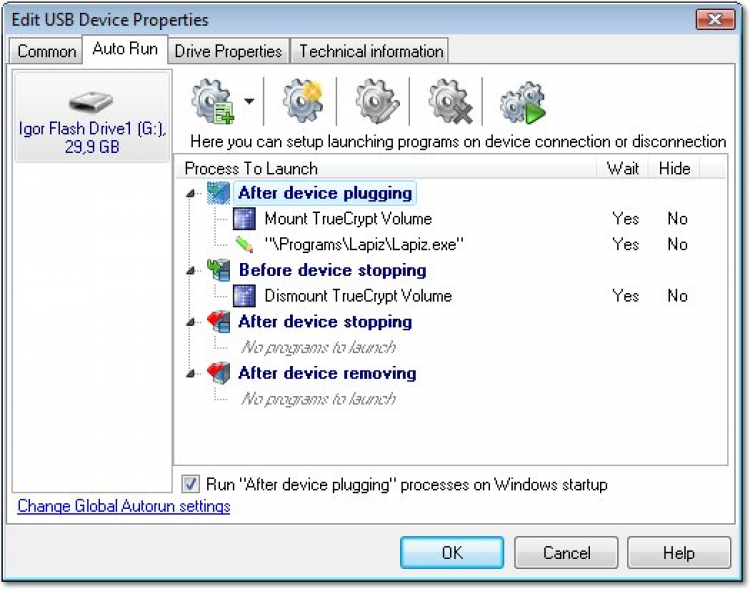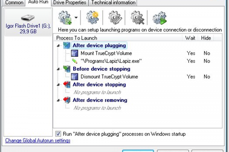 Еще одной полезной функцией USB Safely Remove является настройка автоматического запуска определенных программ при подключении или отключении устройства. Утилита также может работать из командной строки Windows.