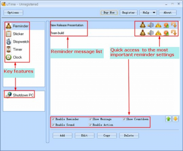 Функция "напоминалки" позволяет в назначенное время выводить на экран сообщения, проигрывать звуковой файл, открыть ссылки или документы, запускать программы. Кроме того, ее можно так же использовать и для автоматического выключения/перезагрузки ПК.